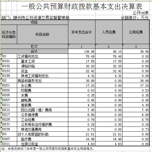 2015年支出決算72.16萬元,其中:人員經費101.14萬元,日用公用經費71.02萬元,結余50.46萬元。