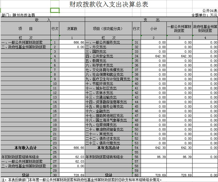 根據《市人民政府辦公室關于做好2015年政府信息公開工作的通知》(隨政辦函【2015】39號)要求,現將隨州市司法局2015年部門決算予以公開,有關情況說明如下: