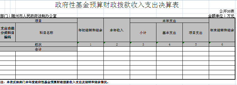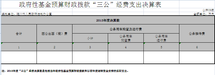 2015年度,市政府法制辦因無政府性基金,所以“政府性基金預算財政撥款支出決算表”無數據。
