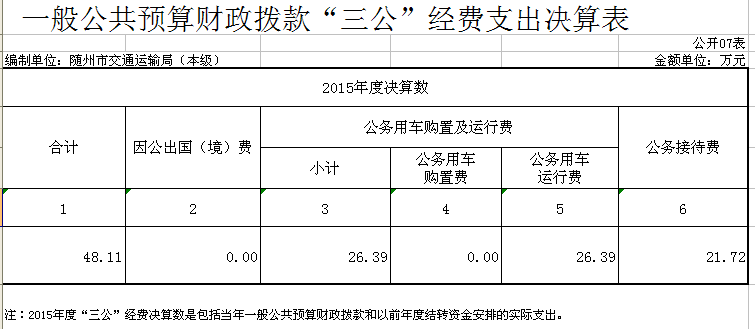 2015年度“三公”經(jīng)費(fèi)財(cái)政撥款決算48.11萬(wàn)元,其中,因公出國(guó)(境)費(fèi)0萬(wàn)元,公務(wù)用車購(gòu)置及運(yùn)行費(fèi)26.39萬(wàn)元,公務(wù)接待費(fèi)21.72萬(wàn)元。