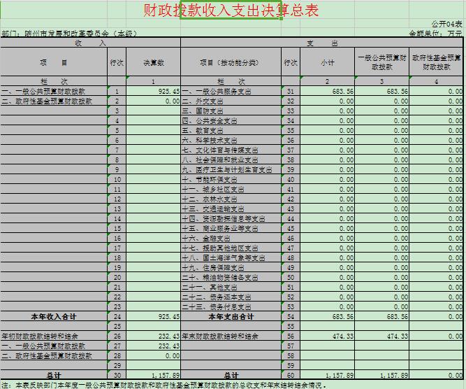 4、財政撥款收入支出決算總表