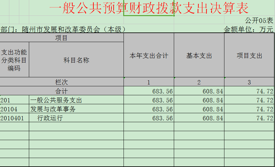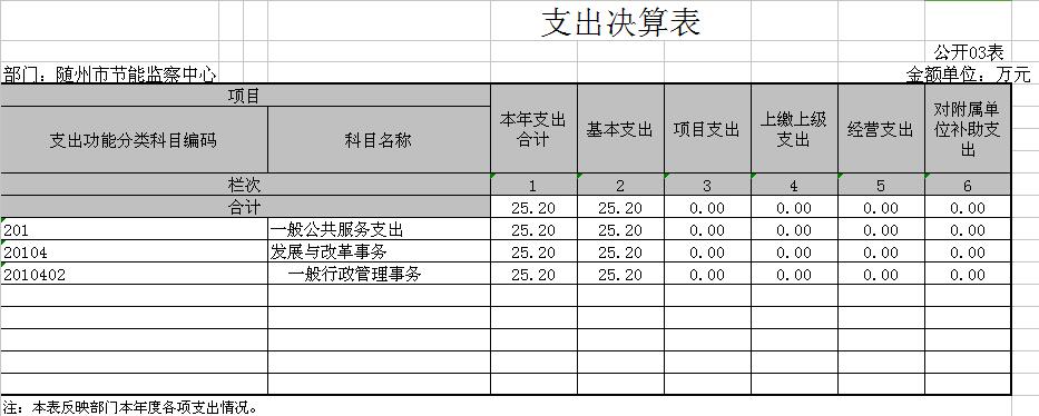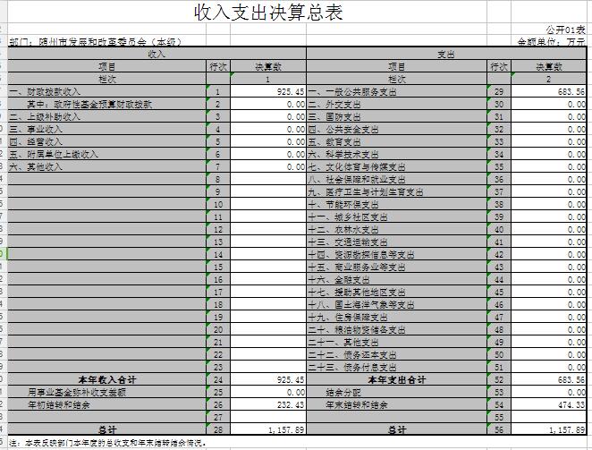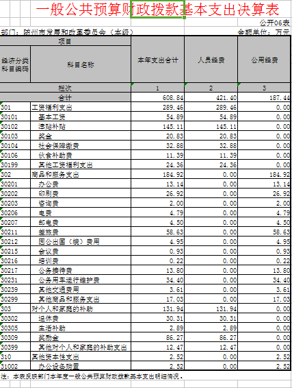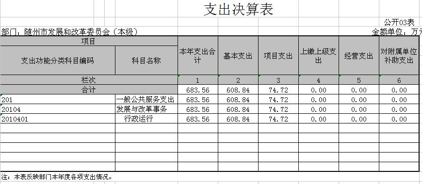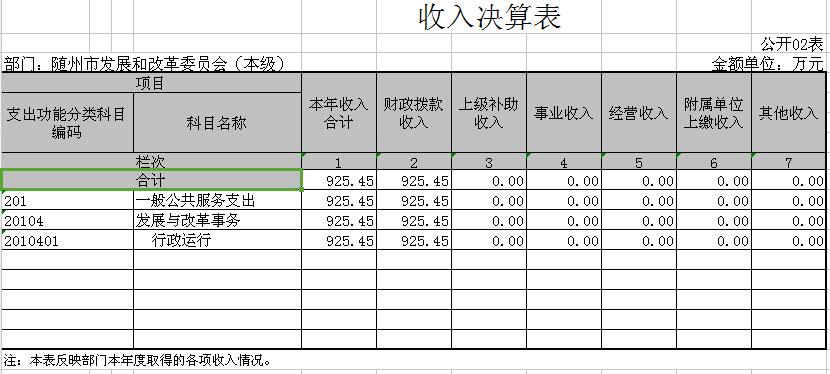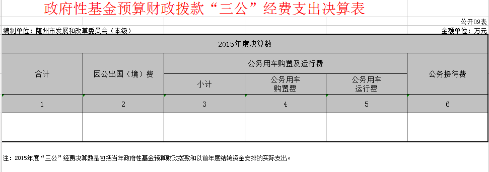 隨州市發改委2015年財政決算公開