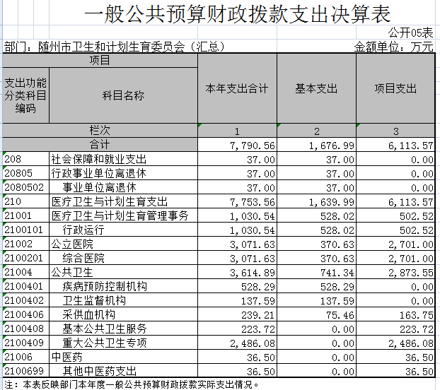 隨州市衛(wèi)生計(jì)生委2015年部門(mén)決算公開(kāi)