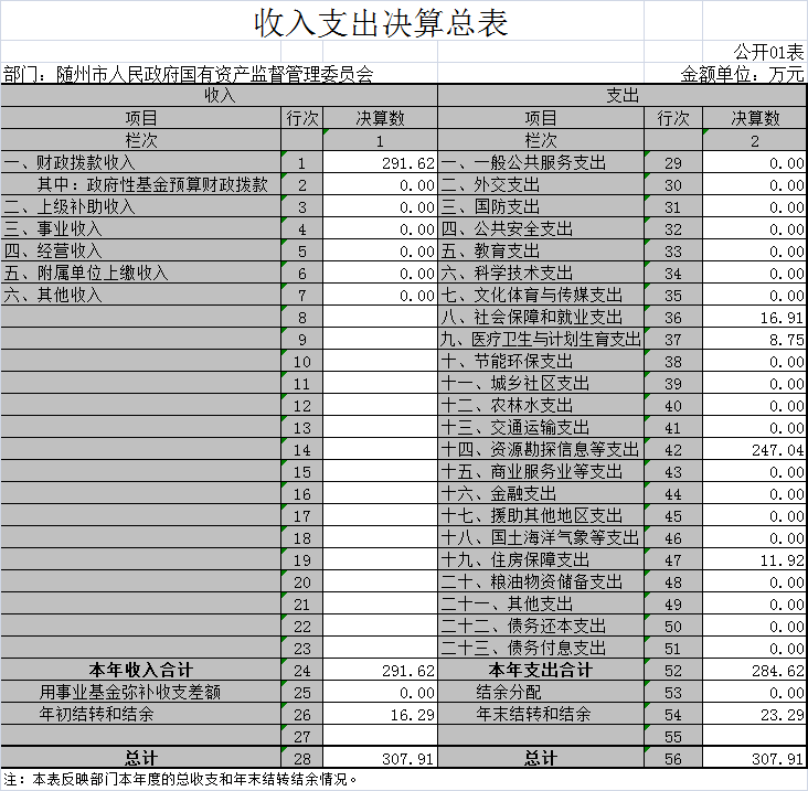 依據《市財政局關于批復2016年度部門決算的通知》(隨財發〔2016〕31號)文件,2016年度市政府國資委部門決算總體收支情況如下: