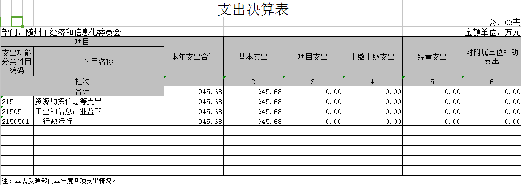 按功能分類科目分:資源勘探信息等支出預算數為413.5萬元,決算數為945.68萬元,完成年初預算的228.7%。