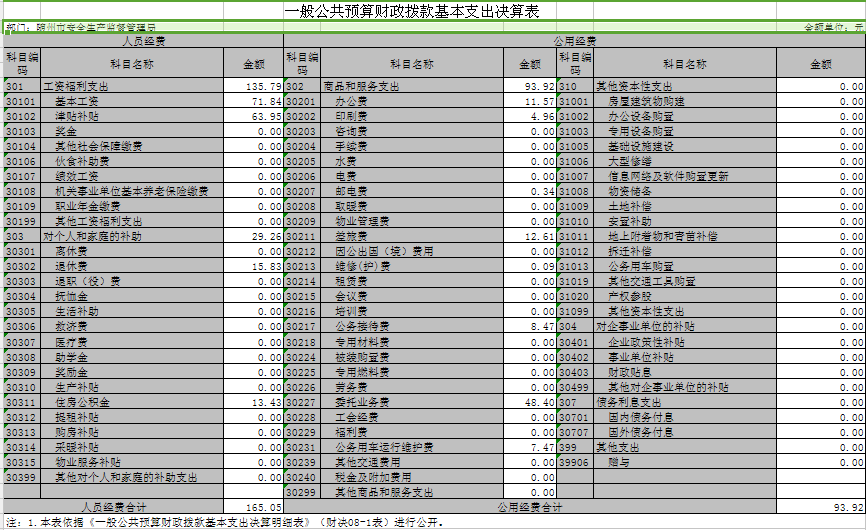 安全生產監督管理局決算本著以單位真實財務數據為基準進行填列,在編報過程中,基本支出所列出項都是由總賬明細賬數據得來的。