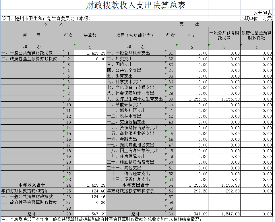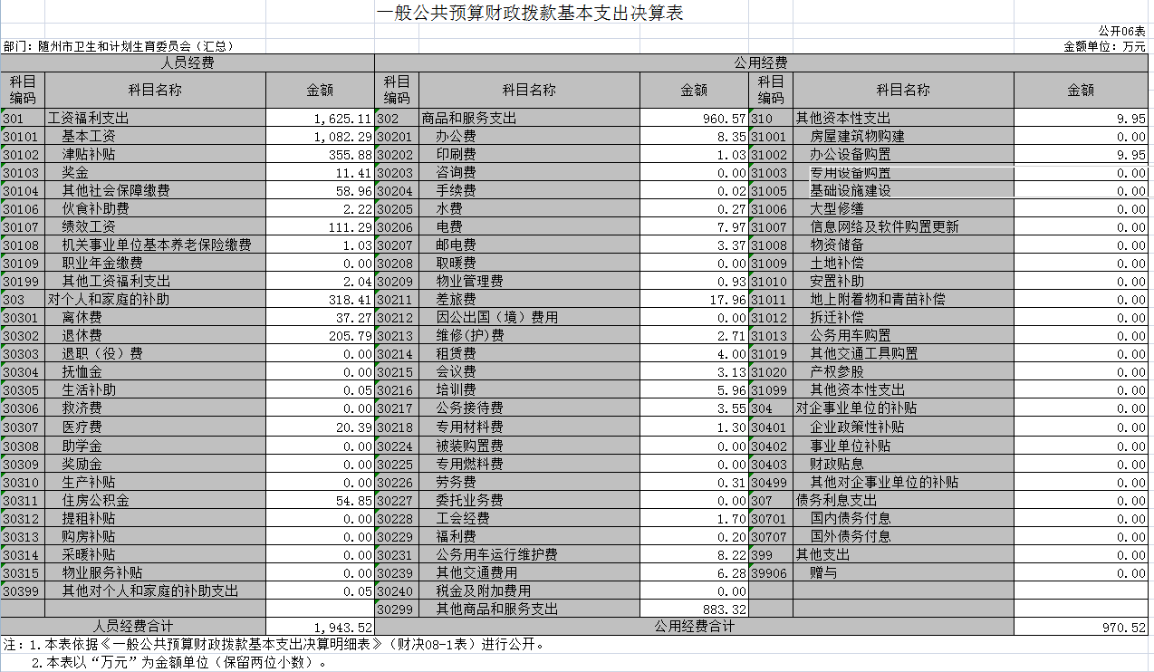 根據(jù)隨州市財政局《關(guān)于批復(fù)2017年度部門決算的通知》(隨財函〔2017〕151號)和《關(guān)于做好2017年度市級部門決算信息公開工作有關(guān)事項的通知》(隨財函〔2017〕152號)文件精神,現(xiàn)將隨州市衛(wèi)生計生委2017年部門決算情況說明如下: