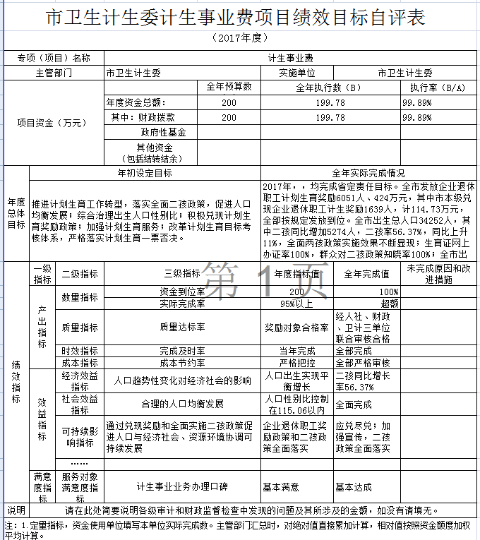 2、項目資金管理情況分析及績效自評情況。為了確保項目資金投入的準(zhǔn)確性,省、市先后出臺《省人民政府轉(zhuǎn)發(fā)省人口計生委等部門關(guān)于落實企業(yè)退休職工計劃生育獎勵政策實施方案的通知》(鄂政辦發(fā)[2007]116號)、市委辦市政府辦關(guān)于印發(fā)《隨州市創(chuàng)建國家衛(wèi)生城市工作實施方案》的通知(隨辦文[2015]18號)、關(guān)于隨州市創(chuàng)建國家衛(wèi)生城市推進(jìn)會的紀(jì)要(市政府專題會議紀(jì)要[2016]12號)等文件,我們嚴(yán)格按照以上文件精神進(jìn)行了支出安排和核算,真正做到了立項有依據(jù),支出有規(guī)范,事后有考核、監(jiān)督,項目完成良好,基本達(dá)到了預(yù)算效果。