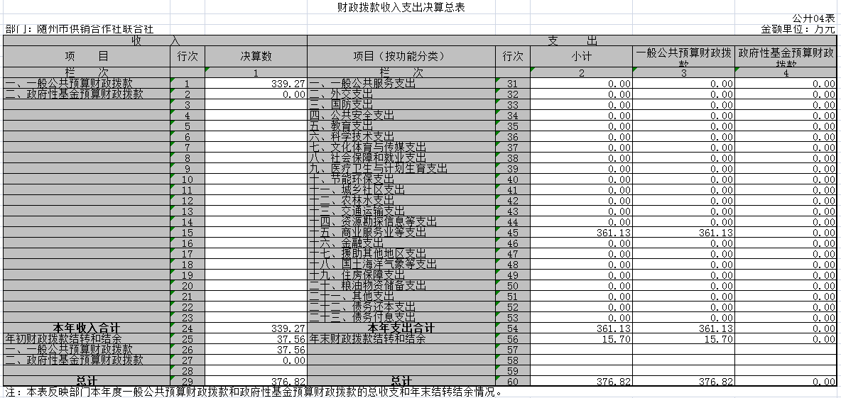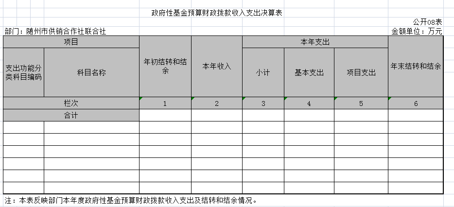 單位無政府性基金財政撥款收入和支出,故政府性基金預算財政撥款收入支出決算表(公開8表)無數據。