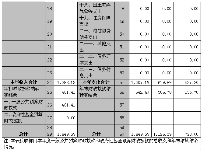 四、財政撥款收入支出決算總表
