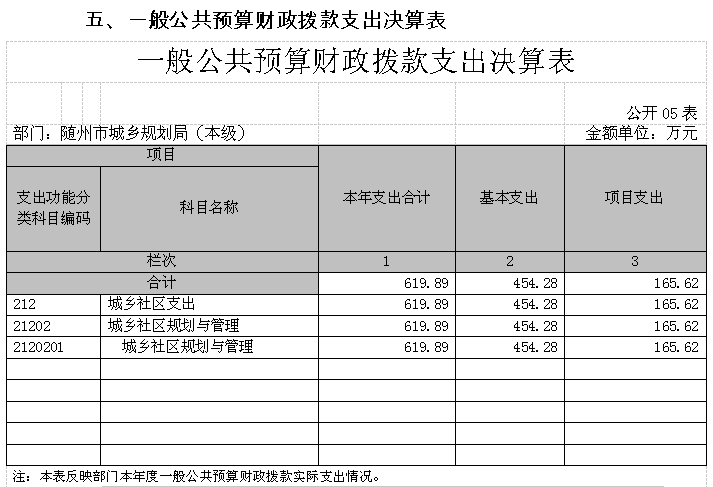 五、一般公共預算財政撥款支出決算表