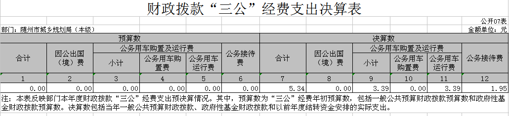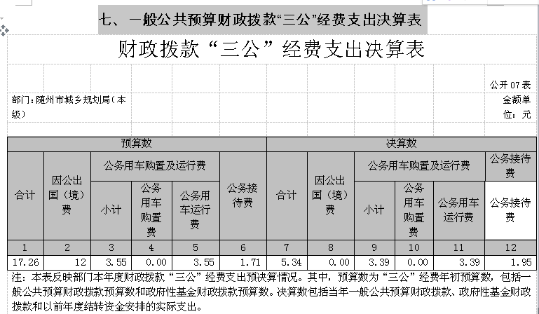 七、一般公共預算財政撥款“三公”經費支出決算表