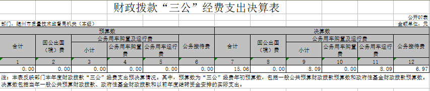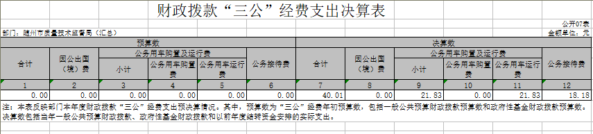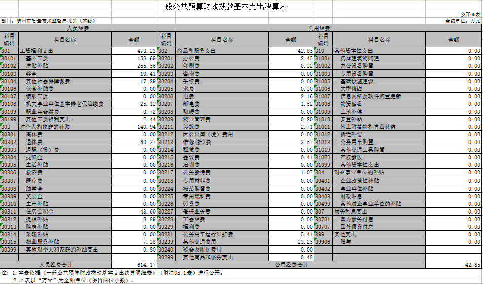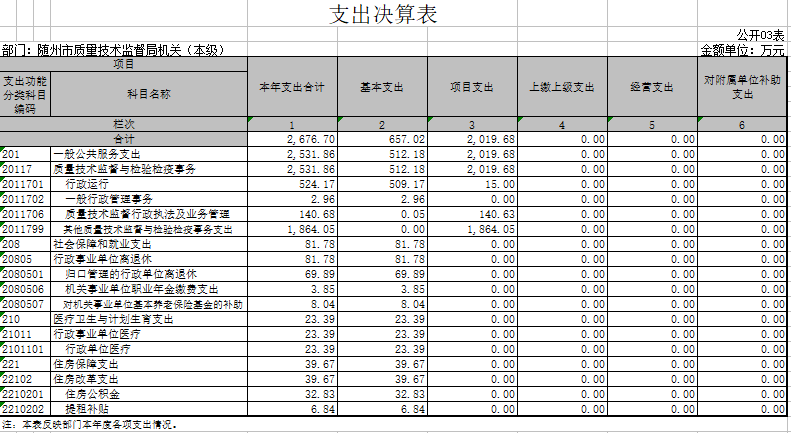 1、隨州市質量技術監督局(匯總)2017年度部門決算公開表