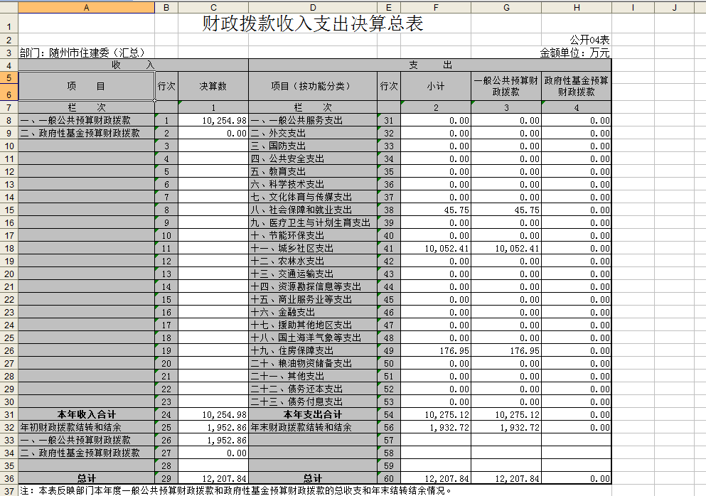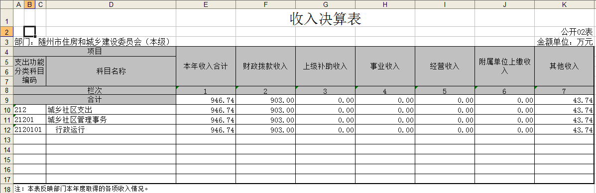 2017年隨州市住建系統(tǒng)(匯總)部門收入16541.15萬元,比上年決算收入的22346.22萬元減少了5805.07萬元,同比下降了25.98%。主要原因是大部分項目支出資金在實際執(zhí)行過程中并未撥付到本單位,具體為全市污水處理及設備維護基金直接撥付到污水處理廠,部分城市維護費直接撥付到各項目實施單位。其中財政撥款收入10254.98萬元,占比62%,比年初預算10956.54萬元少701.56萬元;上級補助收入119.93萬元,占比0.72%;事業(yè)收入74.87萬元,占比0.45%;其他收入1946.61萬元,占比11.77%;用事業(yè)基金彌補收支差額580.75萬元,占比3.51%;年初結轉和結余3564.02萬元,占比21.55%。