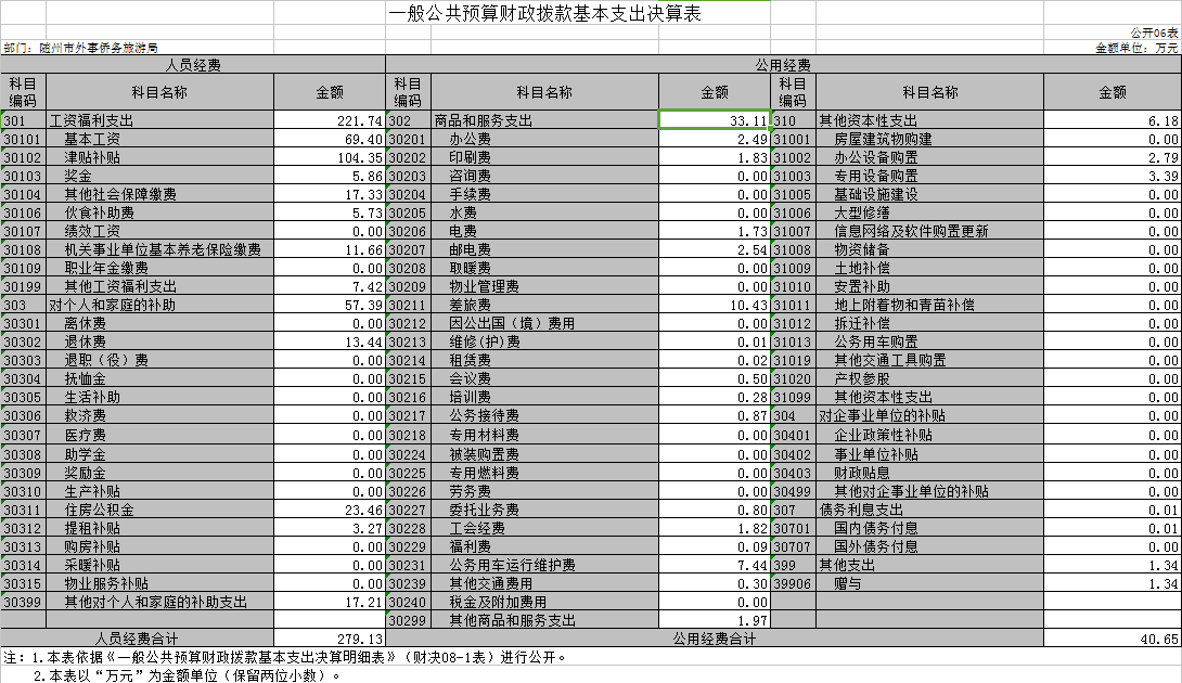 4、基本支出:指為保障機構正常運轉、完成日常工作任務而發(fā)生的人員支出(包括基本工資、津貼補貼等)和公用支出(包括辦公費、水電費、郵電費、交通費、會議費、差旅費等)。