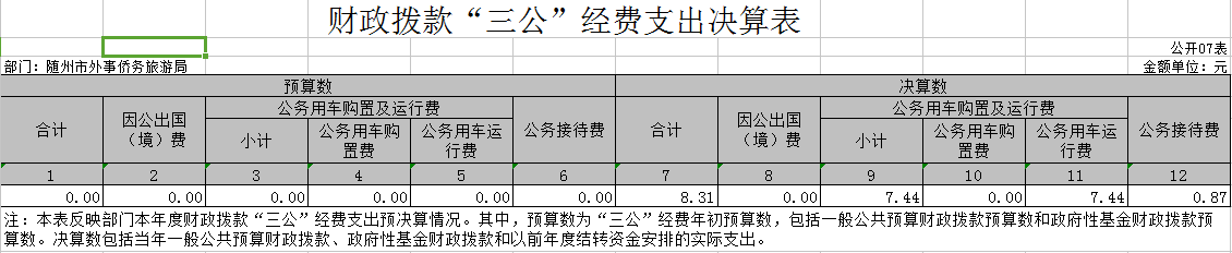 (七)一般公共預算財政撥款“三公”經費支出決算情況(公開07表)