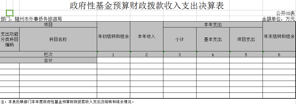 8、政府性基金預算財政撥款收入支出決算表(公開08表)