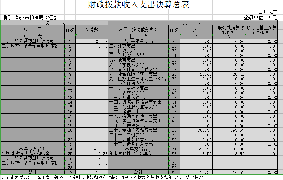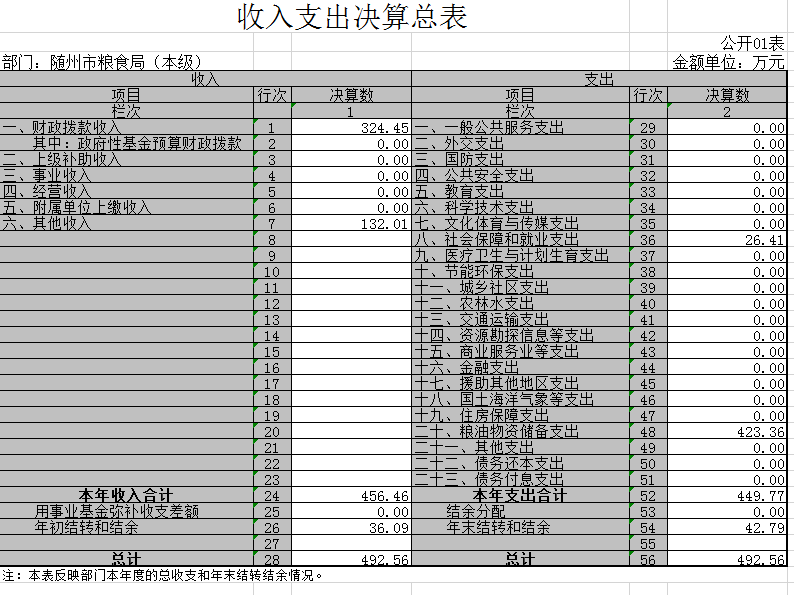 1、隨州市糧食局(匯總)2017年度部門決算公開表