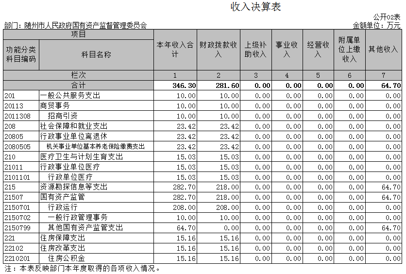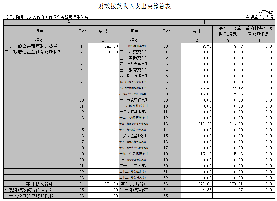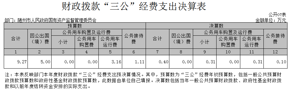 ??國資監管經費10萬元,截止2018年12月31日,10萬元國資監管經費無結余。需要說明的是,按照隨招商委[2018]1號文件,市政府2018年安排市國資委招商分局專班工作經費10萬元,實行招商專款專用,截止2018年12月31日,10萬元招商分局專班工作經費結余12735.8元,財政局已在2019年度統籌收回。