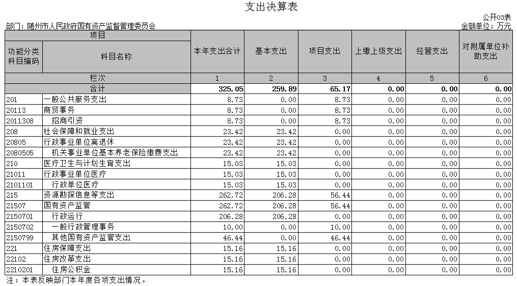 ??2018年決算支出325.05萬元,其中:基本支出259.89萬元,與上年持平。項目支出65.17萬元增加100%,主要原因為本年度新增招商項目、國有資產監管項目支出。