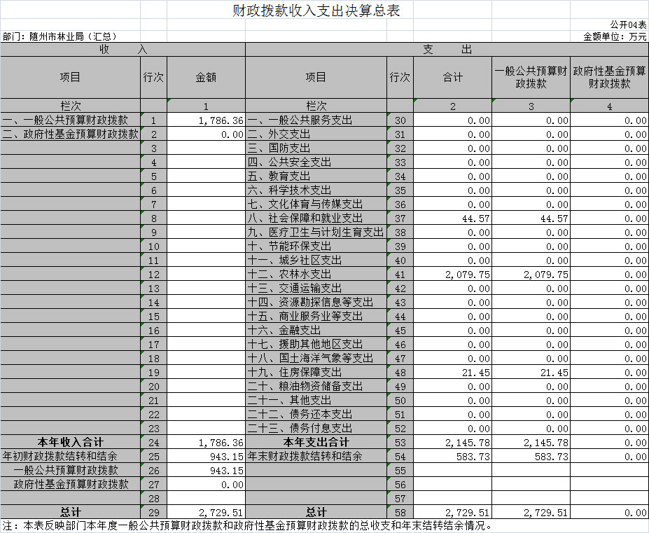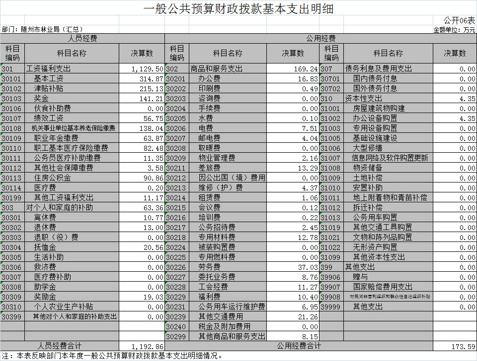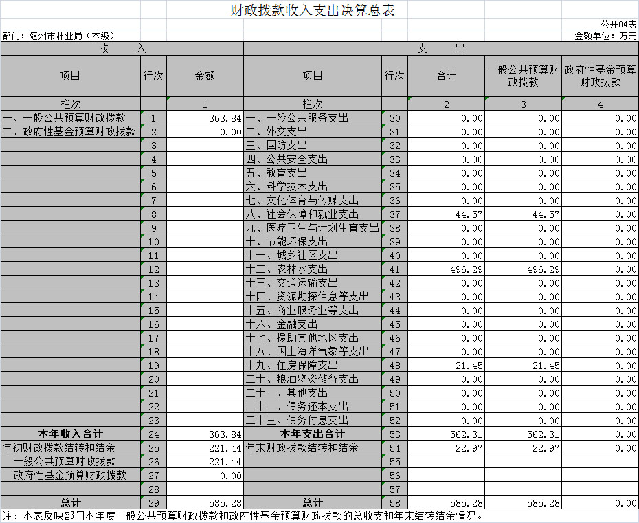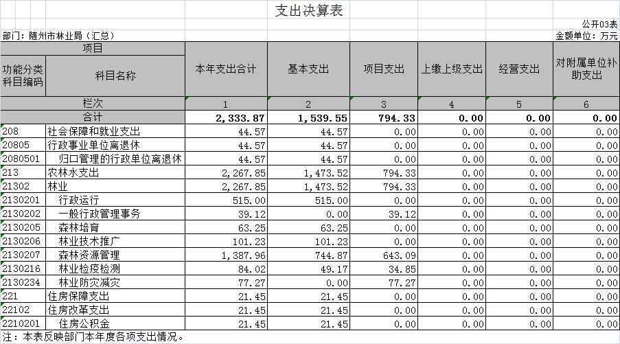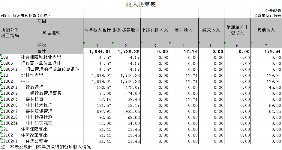 一、隨州市林業(yè)局2018年部門決算表(匯總)