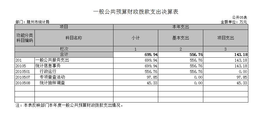第三部分 隨州市統(tǒng)計局2018年決算公開表格