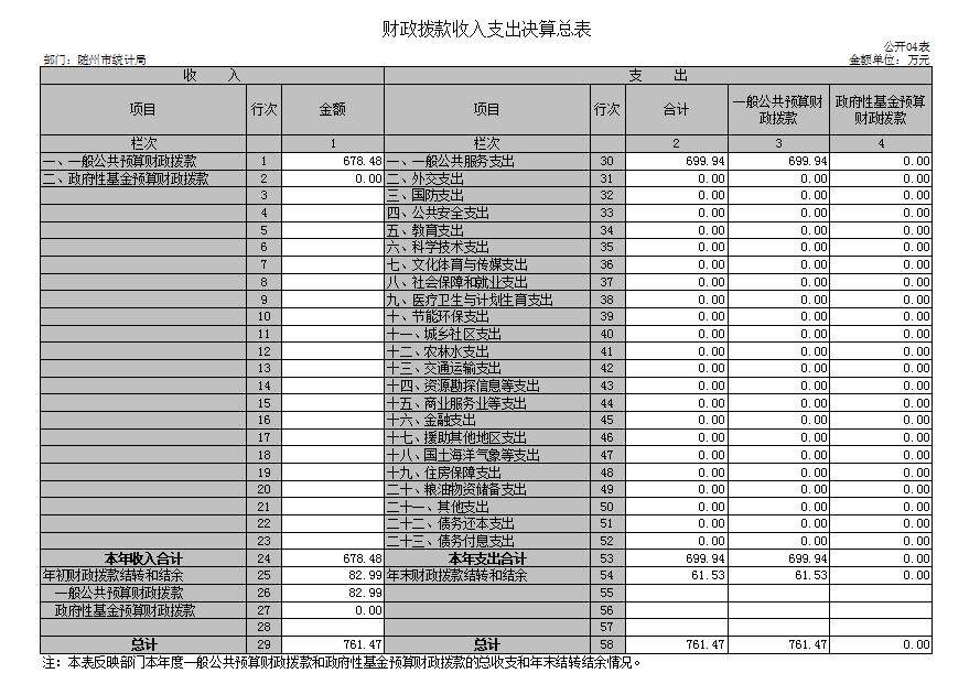 說明:本年度市統(tǒng)計局無政府性基金預(yù)算財政撥款收支
