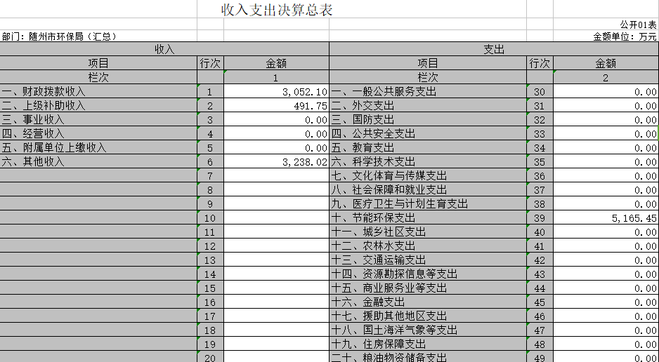 2018年環保局系統納入部門決算管理單位5個,分別為市環保局(含機動車排氣污染監督管理中心)、市環保局曾都分局、市環境監察支隊、市環境保護監測站、市環保局高新園區分局。本級單位行政人員編制18人,實有人員17人,離退休人數14人。市機動車排氣污染監督管理中心(與局機關統一核算)事業人員編制3人,實有人員3人。