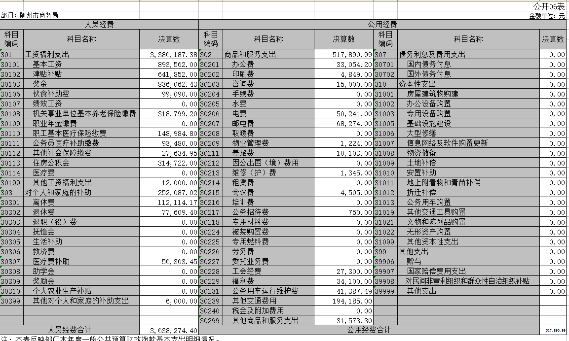 部門人員構成。隨州市商務局共有17個行政編制。在職實有人數21人,其中:行政編制17人,工作人員4人(其中事業編制1人、以錢養事3人)。離退休人員5人,其中:離休人員1人,退休人員4人。