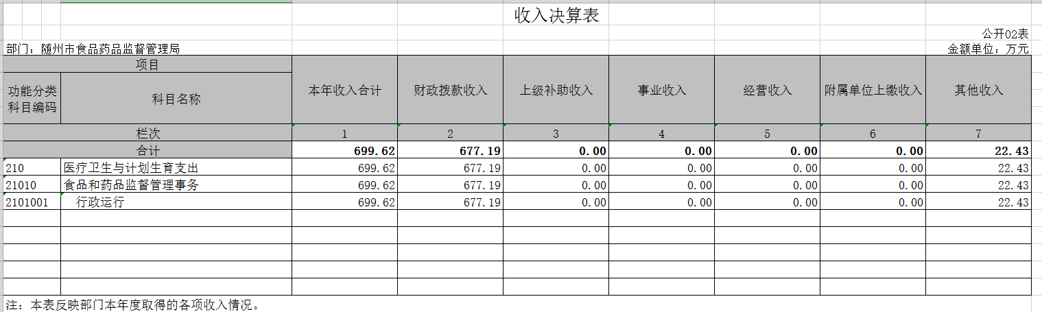 2018年,隨州市食品藥品監督管理局在省食藥監局及市委、市政府的堅強領導下,在全體干部職工的共同努力下,緊緊圍繞中心工作及重點工作,優作風、創亮點、重實干、善創新,較好地完成了年度各項工作任務。一是對深入推進食品放心工程建設,全力保障居民飲食用藥安全做出了積極的貢獻。二是優化行政審批,打造高效便民審批體系。三是扎實推進監管工作,取得顯著成效。四是鼓勵社會監督,引導社會各界廣泛有序參與。三、有關科目名稱解釋