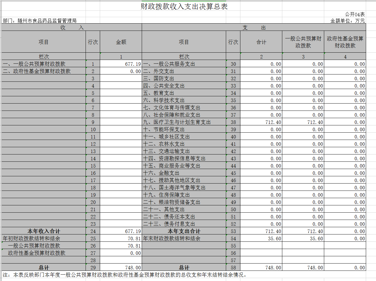 一、收支決算總表