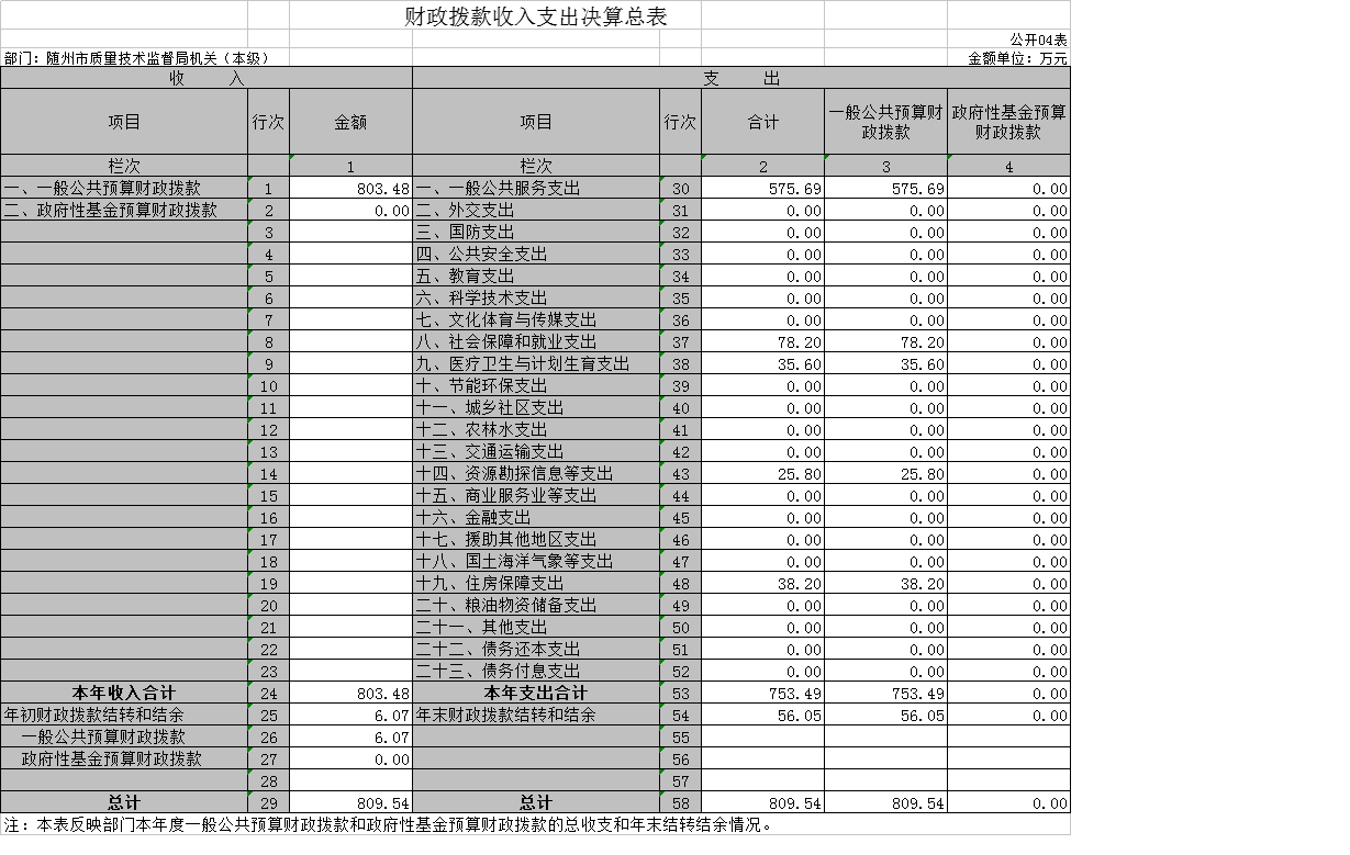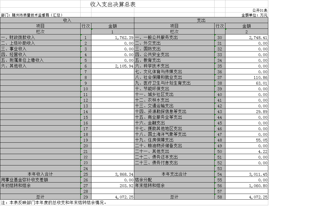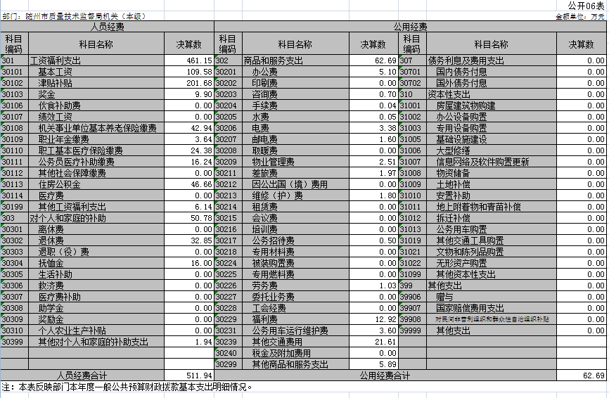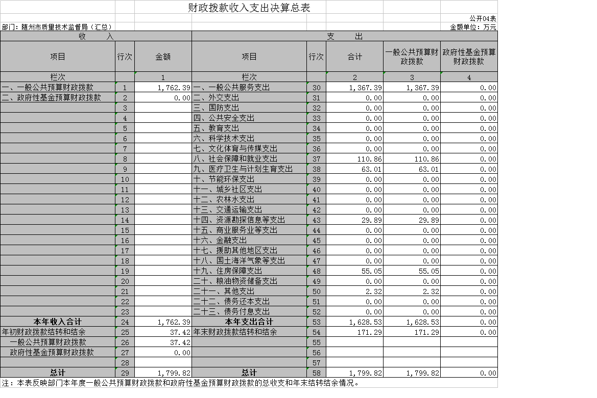 1、隨州市質(zhì)量技術(shù)監(jiān)督局(匯總)2018年度部門決算公開表