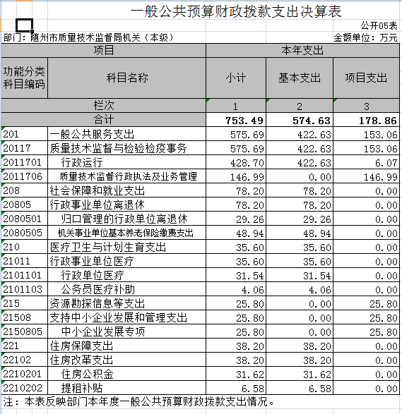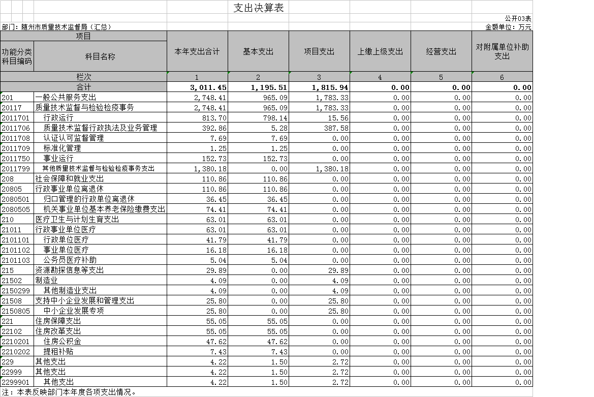 3、事業(yè)運(yùn)行(質(zhì)檢)(項(xiàng)):反映行政單位(包括實(shí)行公務(wù)員管理的事業(yè)單位)的基本支出。