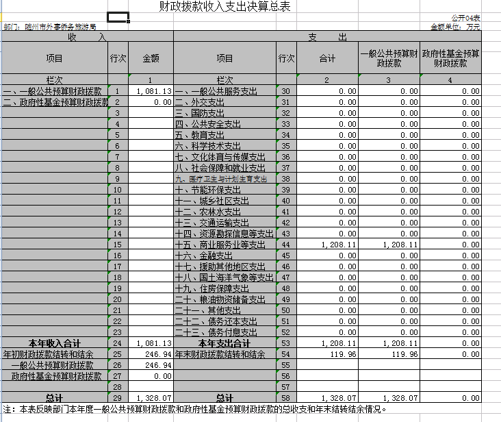 2018年本年一般公共預算財政撥款收入1081.13萬元,年初財政撥款結轉和結余246.94萬元,合計1328.07萬元。