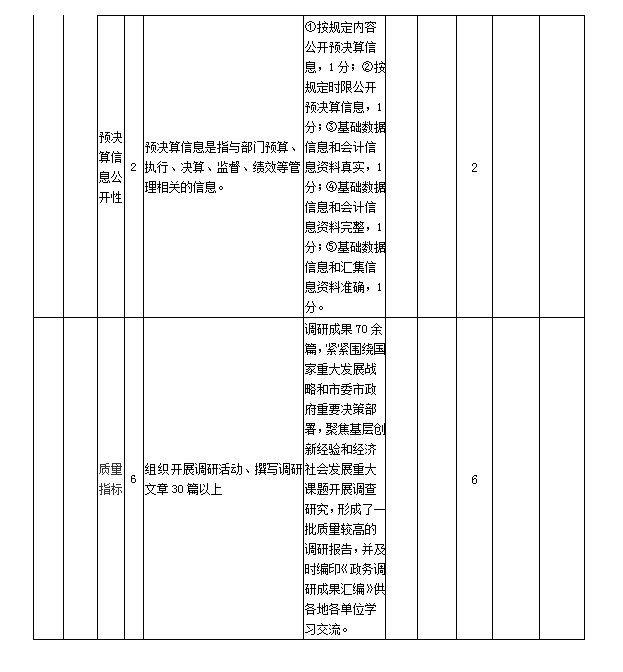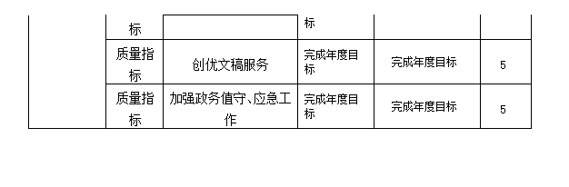 (3)產(chǎn)出指標(biāo)完成情況。主要從深化政務(wù)調(diào)研、強(qiáng)化政務(wù)督查、優(yōu)化信息化服務(wù)、規(guī)范文書處理、加強(qiáng)政務(wù)值守、做好會務(wù)服務(wù)等方面進(jìn)行評價,所設(shè)目標(biāo)指標(biāo)基本完成年初設(shè)定的績效目標(biāo)。