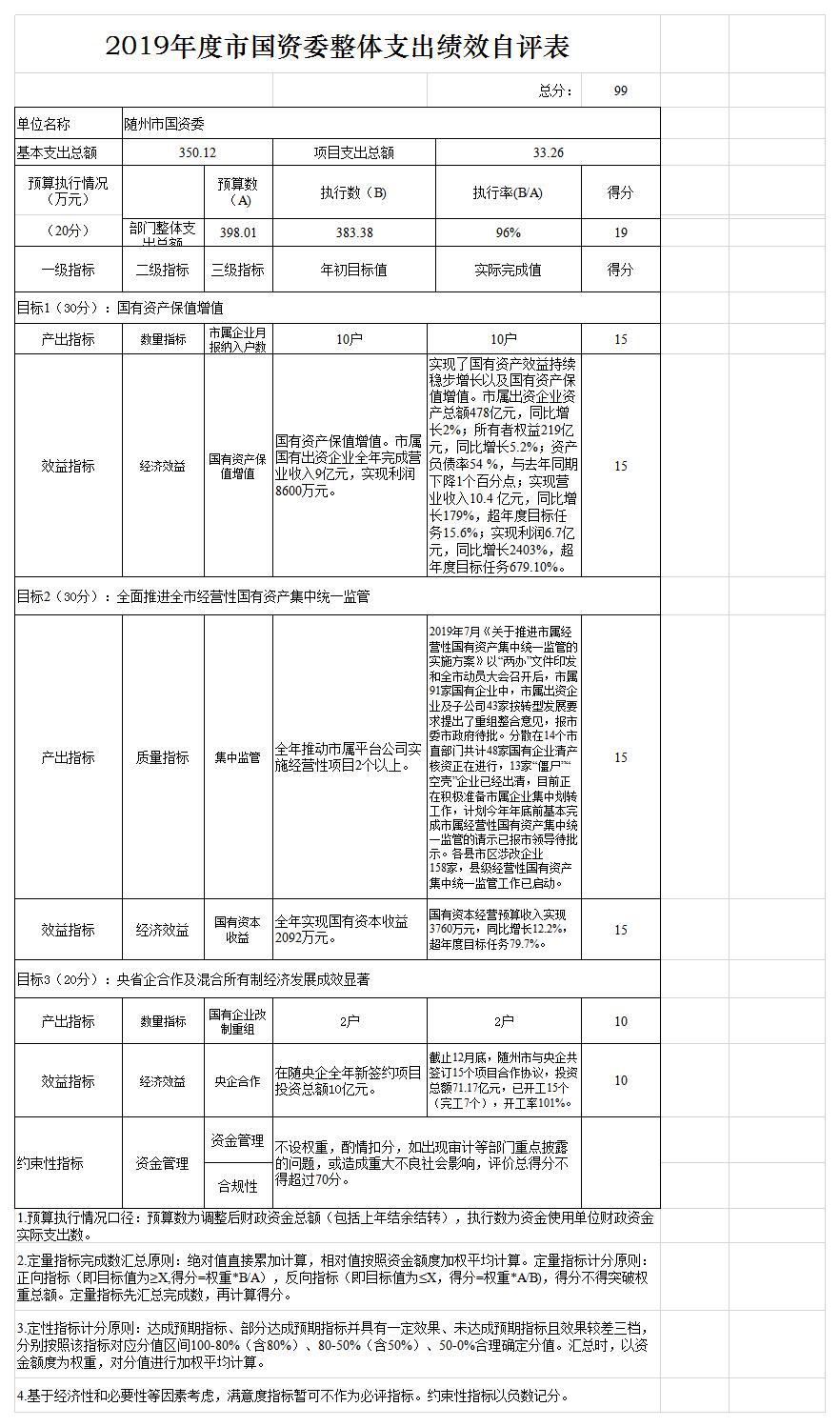 附:2019年度市國資委部門整體支出績效自評表