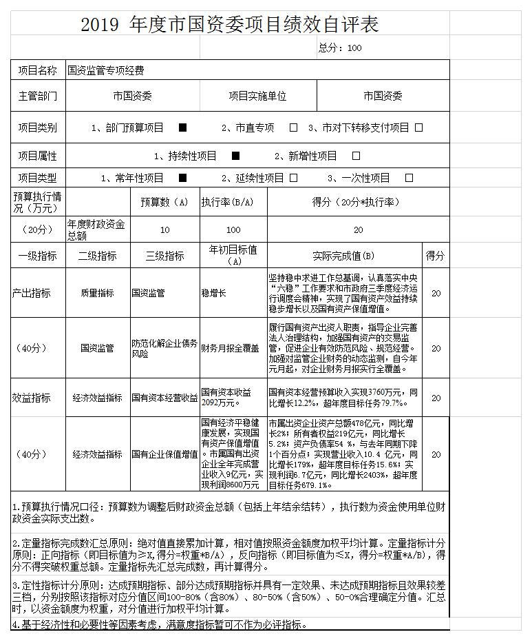 ????2019年度市國資委部門項目支出績效自評表