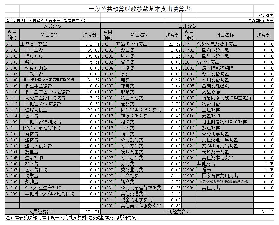 ? ????6、一般公共預算財政撥款基本支出決算表(公開06表)