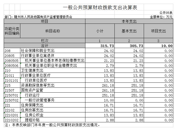 ? ????5、一般公共預算財政撥款支出決算表(公開05表)