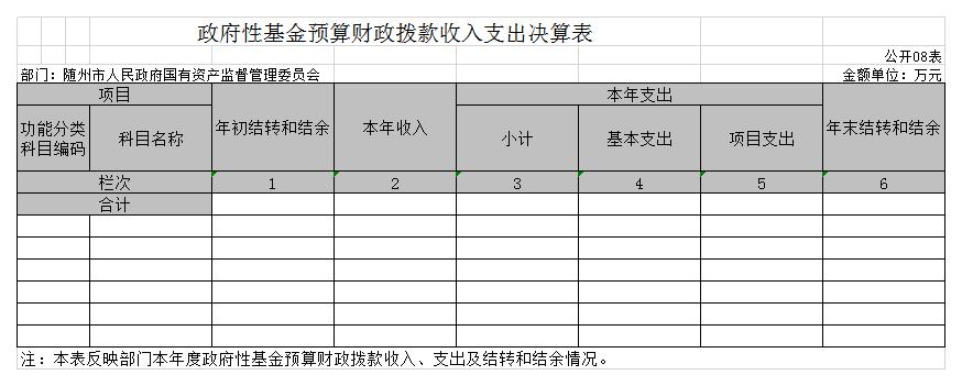 ? ????8、政府性基金預算財政撥款收入支出決算表(公開08表)