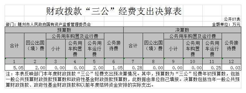 ? ????7、財政撥款“三公”經費支出決算表(公開07表)