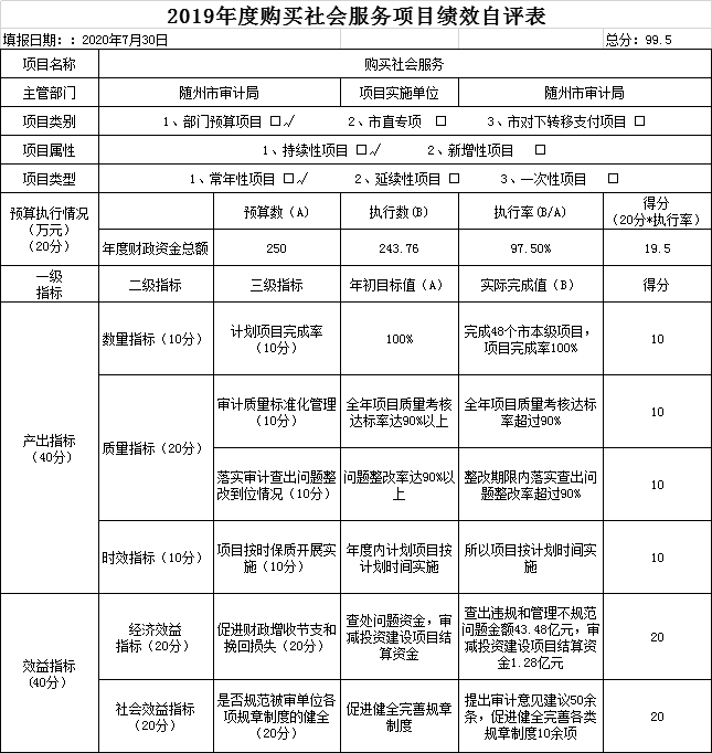 附件:2019年度隨州市審計局項目支出績效自評表