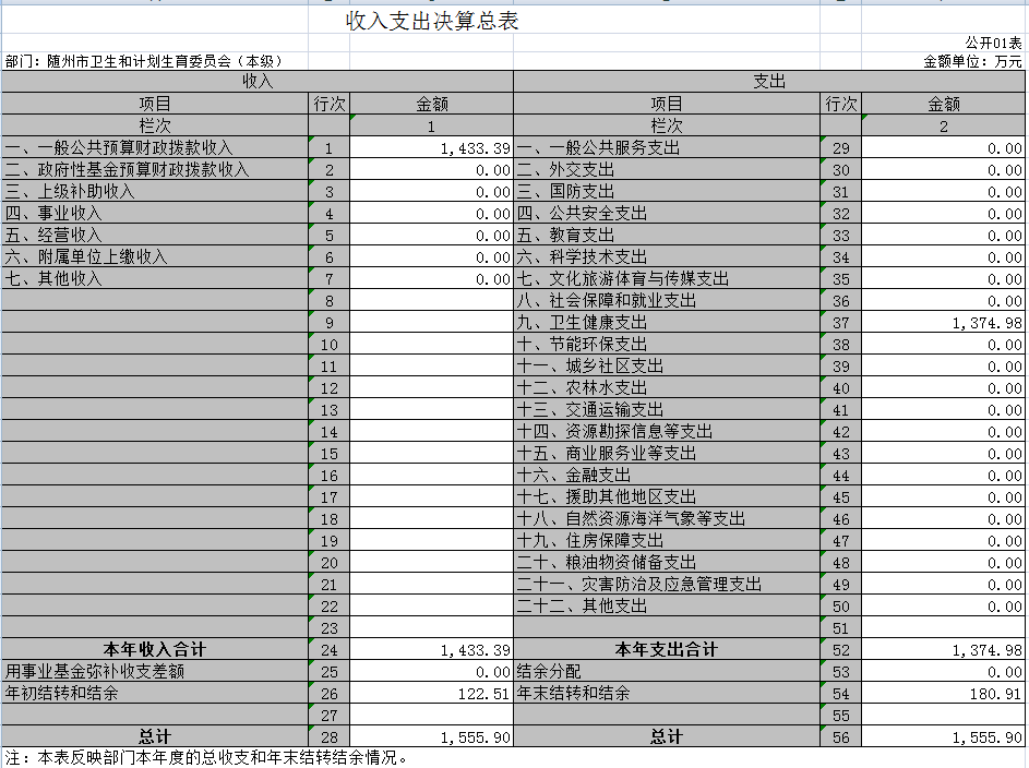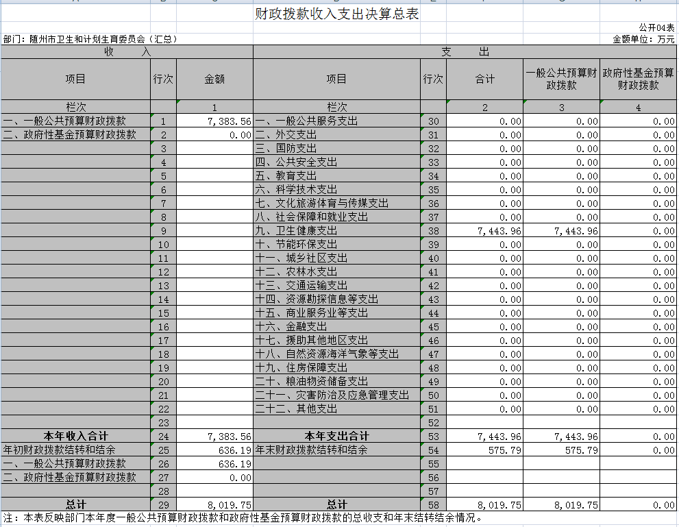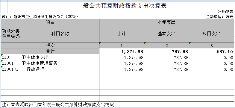 根據《市財政局關于批復2019年度部門決算的通知》(隨財函〔2020〕170號)和《市財政局關于做好2019年度市級部門決算信息公開工作有關事項的通知》(隨財函〔2020〕171號)文件精神,現將隨州市衛生健康委2019年部門決算情況說明如下: