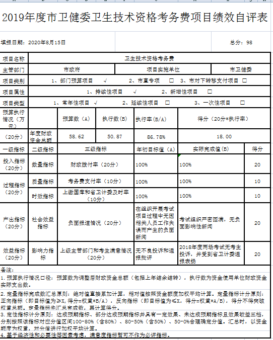 2、項目資金管理情況分析及績效自評情況。為了確保項目資金投入的準確性,省、市先后出臺《省人民政府轉發省人口計生委等部門關于落實企業退休職工計劃生育獎勵政策實施方案的通知》(鄂政辦發[2007]116號)、衛生部、人事部關于印發《預防醫學、全科醫學、藥學、護理、其他衛生技術等專業技術資格考試暫行規定》及《實施辦法》(衛人發[2001]164號)、醫師資格考試暫行辦法等文件,我們嚴格按照以上文件精神進行了支出安排和核算,真正做到了立項有依據,支出有規范,事后有考核、監督,項目完成良好,基本達到了預算效果。