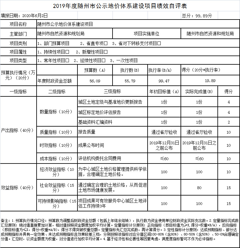 (3)時效指標:隨州市公示地價體系成果下達驗收批復以后,根據省廳要求在2019年12月31日之前完成成果公布工作。