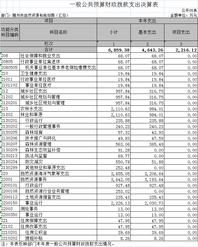 隨州市自然資源和規劃局(匯總)2019年一般公共預算財政撥款支出6859.38萬元,其中基本支出4643.26萬元、項目支出2216.12萬元。隨州市自然資源和規劃局為2019年4月新組建單位,納入部門決算管理的單位共19個,無上年對比數據。