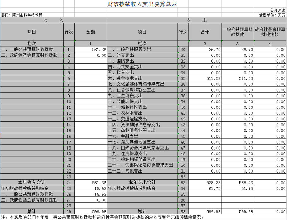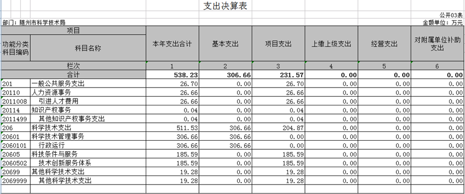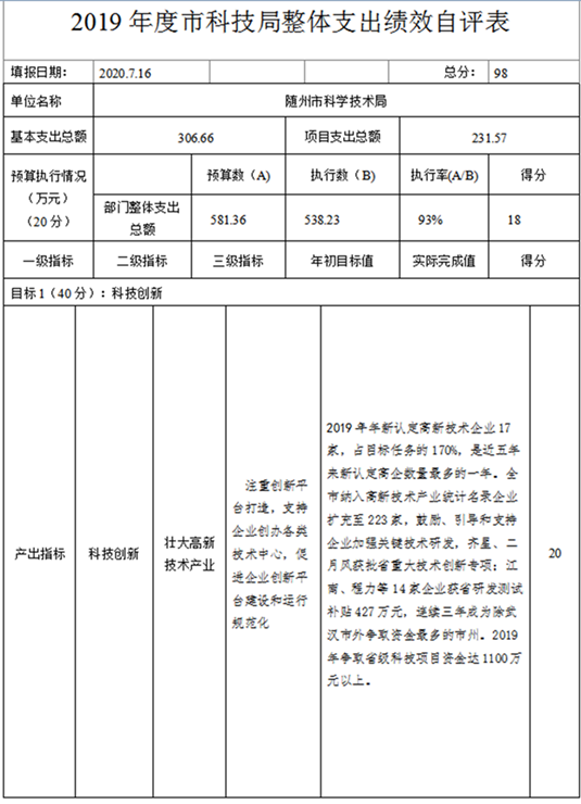 (1)隨州市科技局2019年度整體支出自評報告及績效自評表