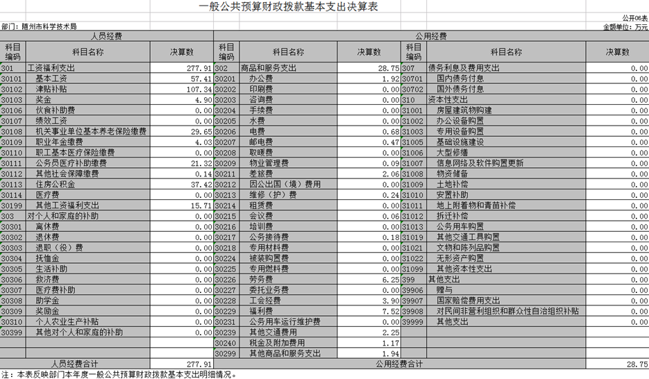 2019年決算收入額581.36萬元,決算支出額538.23萬元,其中:工資福利支出277.91萬元,商品和服務支出95.83萬元,資本性支出(辦公設備購置)0.49萬元,對企業補助148萬元,其他支出16萬元。