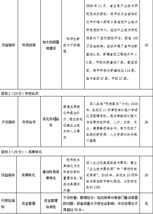 隨州市科技局科技事業費項目2019年度績效自評報告