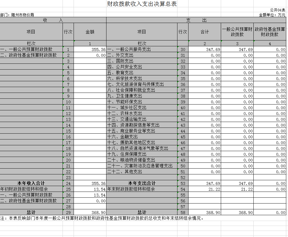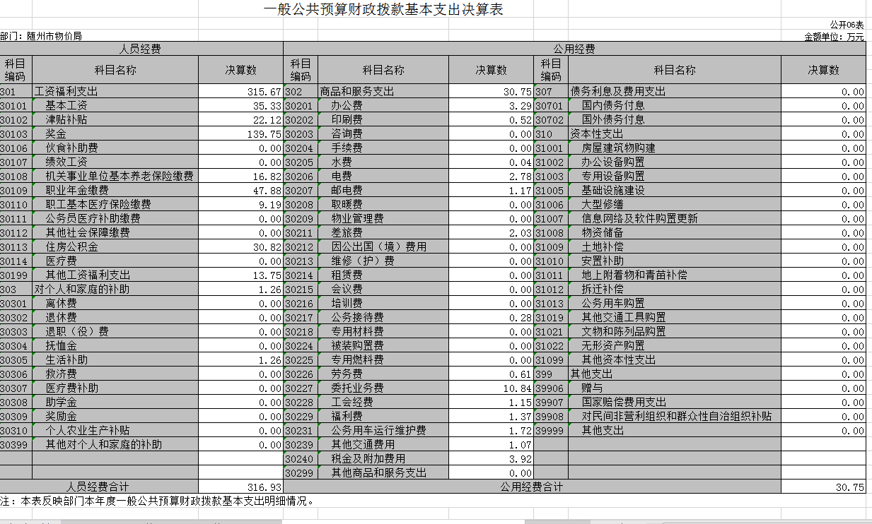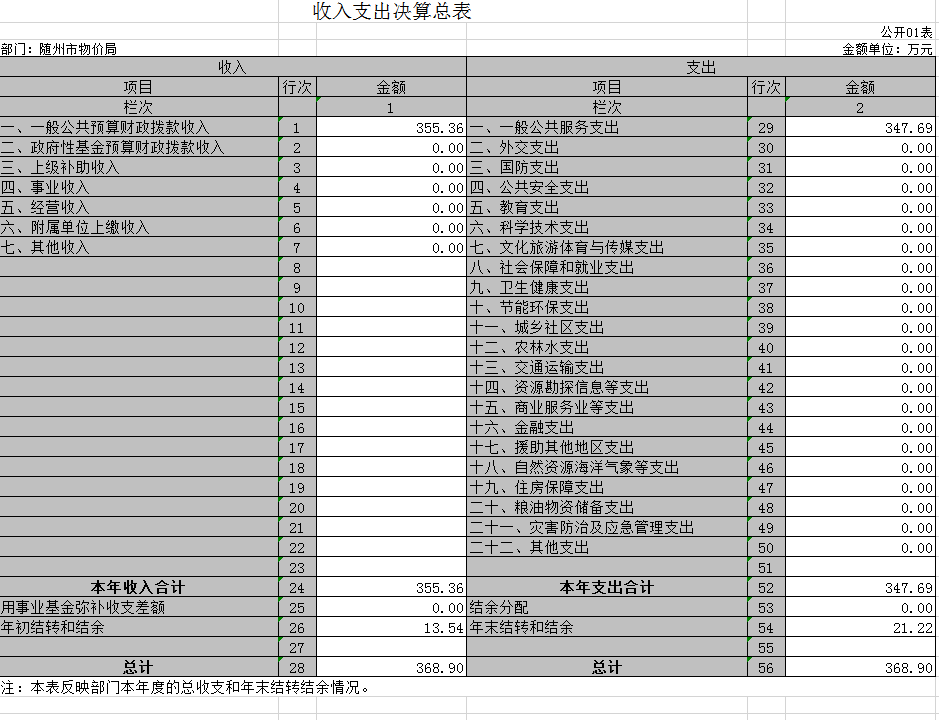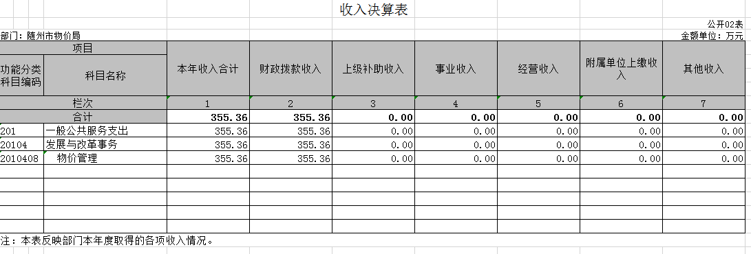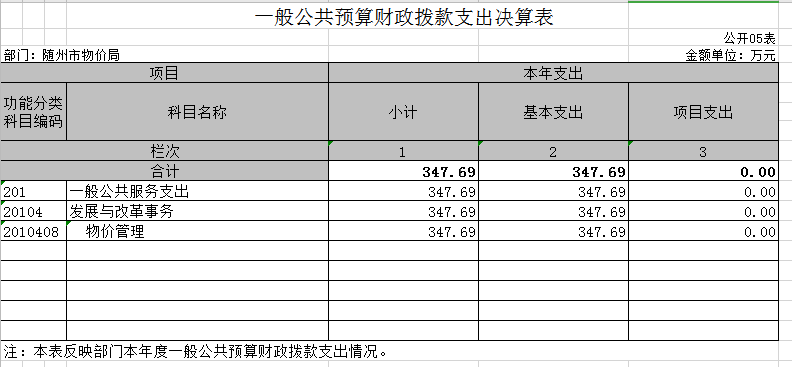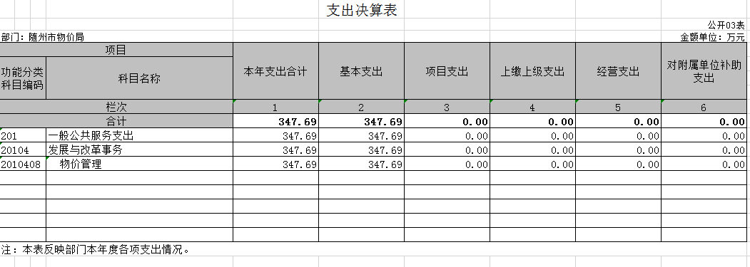 隨州市物價局2019年部門決算公開